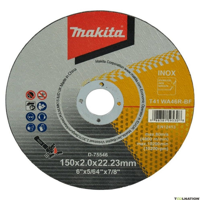 Тонкий отрезной диск для нержавеющей стали 150х2х22,23мм 46R, плоский D-75546 Makita оригинал