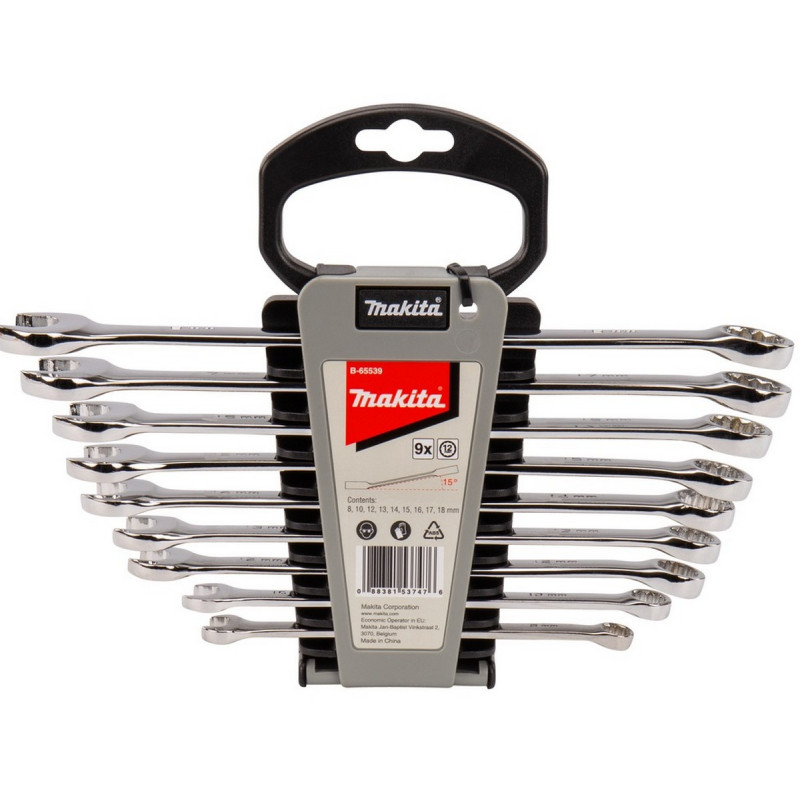 Набір двосторонніх ключів 9 шт. (8,10,12,13,14,15,16,17,18 мм) Makita. Код виробника B-65539.
