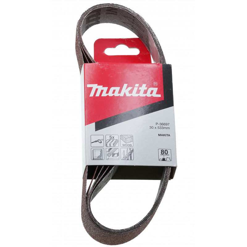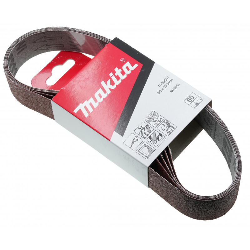 Набір шліфувальних стрічок 30*533 мм К80 Makita (5 шт.) оригінал P-36697